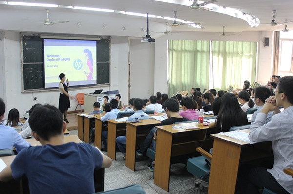 沙坪坝校区隆重举办惠普专场招聘会。本次招聘会由惠普重庆人力资源部经理邹尹萍、惠普技术总监William Shen主讲,计信学院分党委副书记杨宇、2016届毕业班辅导员傅帆参加了本次活动。