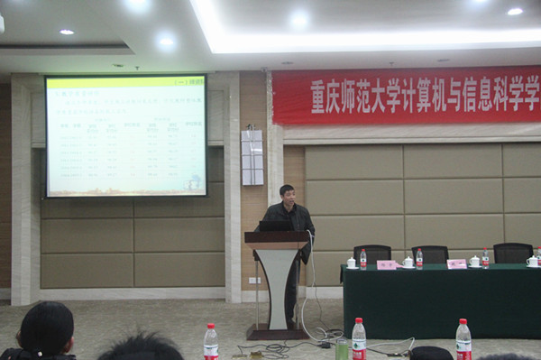 会议分专题发言、分组讨论、总结三个阶段进行。在上午的专题发言中,研究生院院长马燕从宏观到微观对学科建设进行了详尽分析,总结了计信学院的学科建设存在的问题,提出了学科建设发展建议。科研处副处长王放对计信学院的科研情况进行了梳理,并特别介绍了学校对科研发展的保障政策,鼓励计信学院发挥科研特色。接着,计信学院副院长李世宏从本科教学的现状、下一阶段的目标、对策和措施三方面介绍了学院本科教学与人才培养工作情况。副院长杨德刚分析了学院科研、学科建设、研究生工作情况及具体提升措施。最后由学院院长魏延对学院内涵发展、目标考核任务进行总结,提出了学院内涵发展提档升级的新要求。