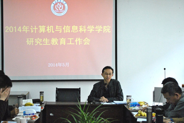 学术型硕士研究生培养方案修订工作的通知》(重师研发〔2014〕21号)的要求,学院于2014年5月4日下午3:00在集贤楼233会议室召开了2014年研究生培养质量提升工作会,参会人员有学院领导、各硕士点领衔导师、副高以上教师、博士以及部分研究生课程任课教师,并有幸邀请到了研究生院马燕院长参加会议。