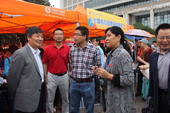 党总支书记刘军、院长李月臣、副院长李世宏、杨德刚,党总支副书记杨宇、办公室主任罗世祥亲临迎新大本营现场,其中主要党政领导实行“领导迎新接待制”,制作的有“计信学院领导迎新接待处”迎宾牌,坐镇迎新现场解答新生及家长的疑问,受校领导班子的一致好评。