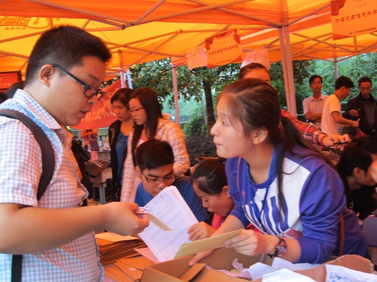团总支副书记、全体辅导员、辅导员助理、第五届团总支学生会全体干部按照既定的安排全面展开忙碌的迎新工作。信息核对、信封分发、信息录入、绿色通道、志愿者安排……现场工作洋溢着浓浓的计信热情。针对贫困学生,设立的绿色通道为新生快速解决难题,使大家一进校就感受到了学院良好的精神面貌和计信大家庭的温暖。大本营后方搭起的帐篷下,新生家长端着茶水,看着学院发的一封信,脸上露出愉快的微笑。