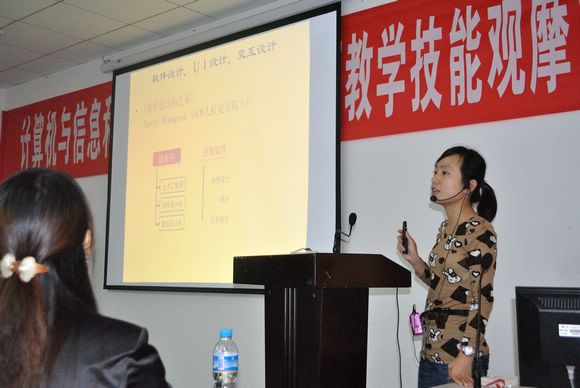 会议室如期举行。学院领导、全体教师、学生代表进行了观摩。叶青等7位青年教师经过各教研室选拔、推荐,进入当日的角逐。