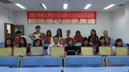还荣获2013中国大学生计算机设计大赛重庆市级赛优秀组织奖。 据悉,“中国大学生计算机设计大赛”是由教育部高等学校计算机科学与技术教学指导委员会、教育部高等学校计算机基础课程教学指导委员会、教育部高等学校文科计算机基础教学指导委员会联合主办。目的是提高大学生综合素质,具体落实教育部高等学校计算机基础课程教学指导委员会编写的《高等学校计算机基础教学发展战略研究报告暨计算机基础课程教学基本要求》,以及教育部高等学校文科计算机基础教学指导委员会编写的《文科类专业大学计算机教学要求》,进一步推动高校本科面向21世纪的计算机教学的知识体系、课程体系、教学内容和教学方法的改革,引导学生踊跃参加课外科技活动,激发学生学习计算机知识技能的兴趣和潜能,为培养德智体美全面发展、具有运用信息技术解决实际问题的综合实践能力、创新创业能力,以及团队合作意识的人才服务。