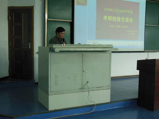 随后,分管学院研究生工作的魏延副院长以“抓住机遇,备战考研”为题,分别从“2013考研回放”、“为什么考研”、“考研应该准备什么”、“学院研究生专业基本情况”四个模块细致的对同学们进行交流分析,旨在引导大家做好考研的心理准备,与同学们交流考研经验,力求让同学们把握方向,不做无用功。魏院长希望同学们提早准备,为2014年考研奠定扎实的基础。