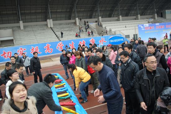 “相约春天、共享美好、同创和谐”。3月8日下午,由校工会主办的一场别开生面的庆“三八”趣味体育活动在大学城校区田径运动场隆重举行,来自各学院、部门工会的23支由男女教职工混合组成的队伍及啦啦队近千人参加了此次活动。比思论坛 教职工在院党政的大力支持下,在学院工会的认真组织下,齐心协力,顽强拼搏,再一次在全校性活动中谱写辉煌,勇夺团体总分第四名,荣获二等奖。