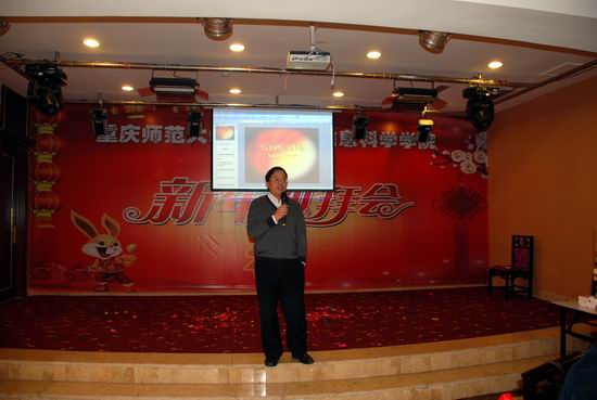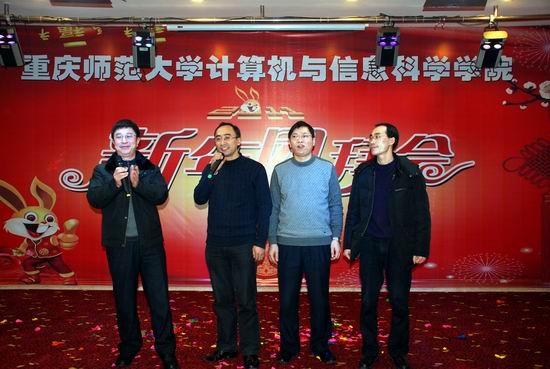 2011年1月6日下午,学院在沙坪坝陶然居隆重召开了2011年新年团拜会。校领导杨新民副校长以及数学学院、物理与电子工程学院、管理学院等相关学院和部分部门领导及来宾应邀出席了团拜会。学院全体教职工、离退休老师参加了团拜会。