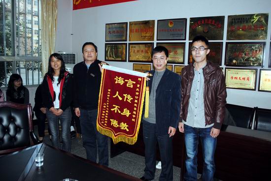 马院长同实习学生代表一道向计算机管理学校赠送锦旗。