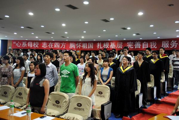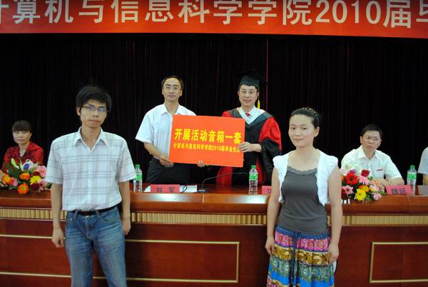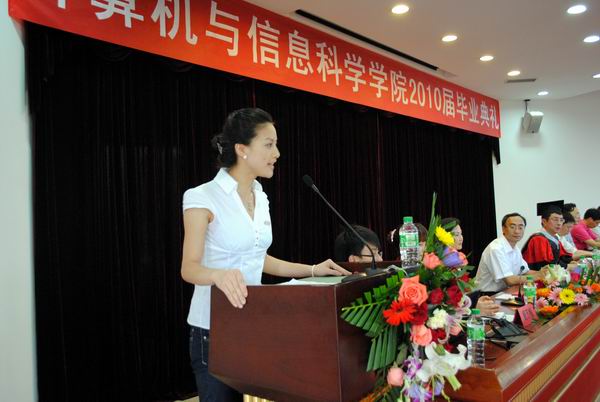 6月25日下午,学院在凯撒报告厅隆重举行了2010届本科学生毕业典礼,学院全体党政领导、学院学位评定分委员会委员、学院办公室及各系正副主任、学院2010届本科毕业生、各兄弟院系代表、学院低年级学生代表参加了典礼。典礼仪式由学院党总支副书记李晓燕主持。