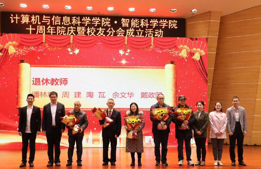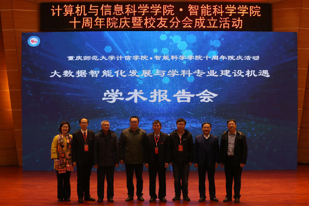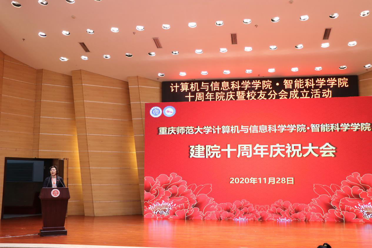 纪委书记肖应红教授,中国人工智能学会副理事长、重庆人工智能学会理事长、重庆邮电大学副校长王国胤教授,全国高等学校计算机教育研究会师范教育分会副理事长、南京师范大学计算机与电子信息学院院长吉根林教授、副院长蔡继明教授,重庆计算机学会秘书长、重庆大学曾一教授,中国计算机学会重庆分部主席、重庆大学大数据与软件学院党委书记文俊浩教授,重庆交通大学、重庆工商大学、重庆三峡学院等计算机学院领导。还有企业界嘉宾腾讯教育、重庆致业源科技有限公司、中渝智能设备(重庆)有限公司、重庆门罗机器人科技有限公司代表。计信学院成立时相关联的三个学院的领导数学科学学院党委书记杨光平、物理与电子工程学院党委书记胡先成、经济与管理学院副院长喻科以及历任学院领导刘军、马燕、李月臣、李晓燕、杨宇、杨晓红和130余名校友、学院退休同志、全体教师和部分学生代表出席了会议。