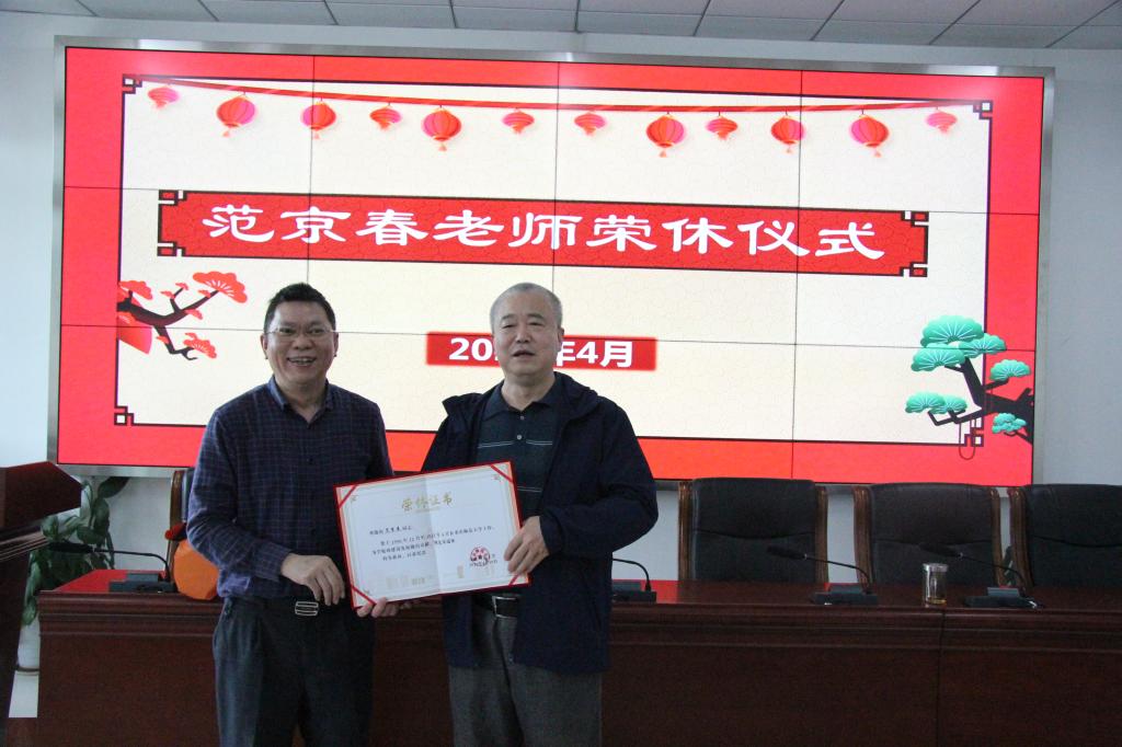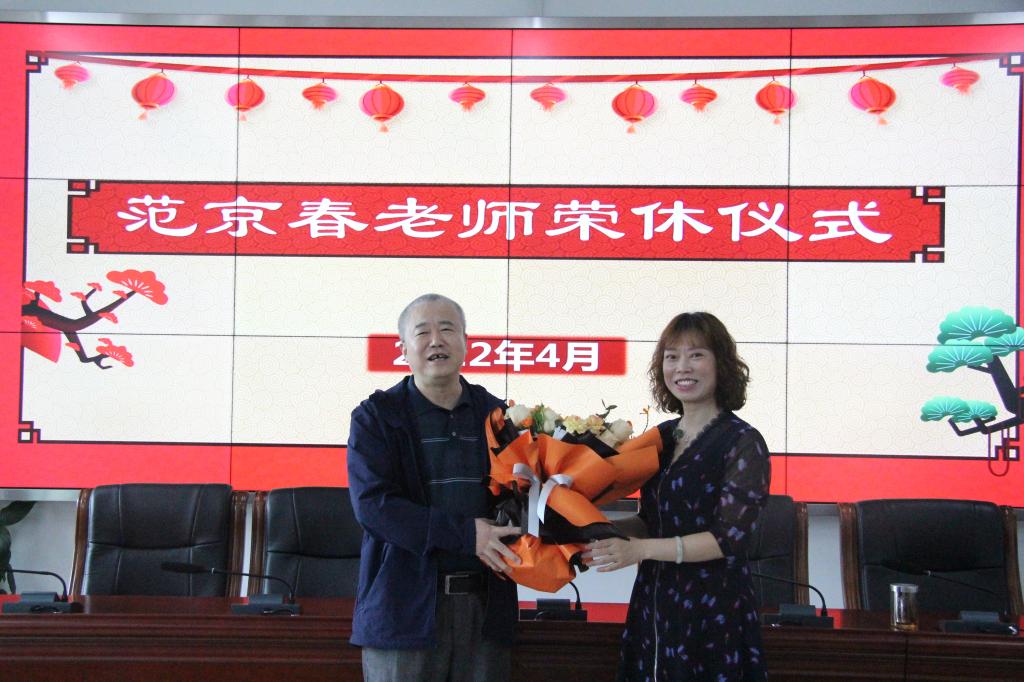 在致用楼319会议室举行范京春老师荣休仪式,学院全体教职工齐聚一堂,与范老师共叙美好往事,陈兰书记主持仪式。