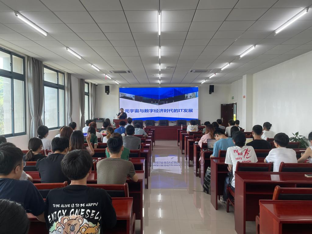 此外,在致用楼319重庆中关村智酷人才创新实践基地教学总监刘洋为计信学院的同学们带来了一场别开生面的宣讲会。刘洋总监向同学们介绍了元宇宙与数字经济时代的IT发展,并从IT开发岗位的开发方向以及平均薪资方面,让同学们了解到数字经济与元宇宙已成为未来的发展趋势。接着,他介绍了重庆数字经济人才实训基地,从理念、特色、项目案例等方面展现出实训基地的优势。随后,刘总监详细介绍了创世云招聘技术岗位工程师和迪捷软件组织开展工程实践项目,现场同学也对此表现出浓厚的兴趣,他指出“掌握IT技能是追赶数字经济的捷径”,鼓励学生进行深度学习。