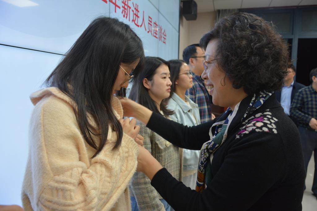 陈书记随后做总结发言,对新人提出三点要求,一是不忘初心选择,忠于教师职业、热爱教师职业、坚定教师职业。二是主动融入,共建和谐,积极了解校院办学历史、办学特色,尽快适应学校学院工作,成为重师计信人;三是牢记使命担当,教书育人,做好教师本职,以德立身、以德立教、潜心教学,成好学生的“四个引路人”,在重师在计信创造出灿烂的人生辉煌。最后,学院领导为各位新人佩戴比思论坛