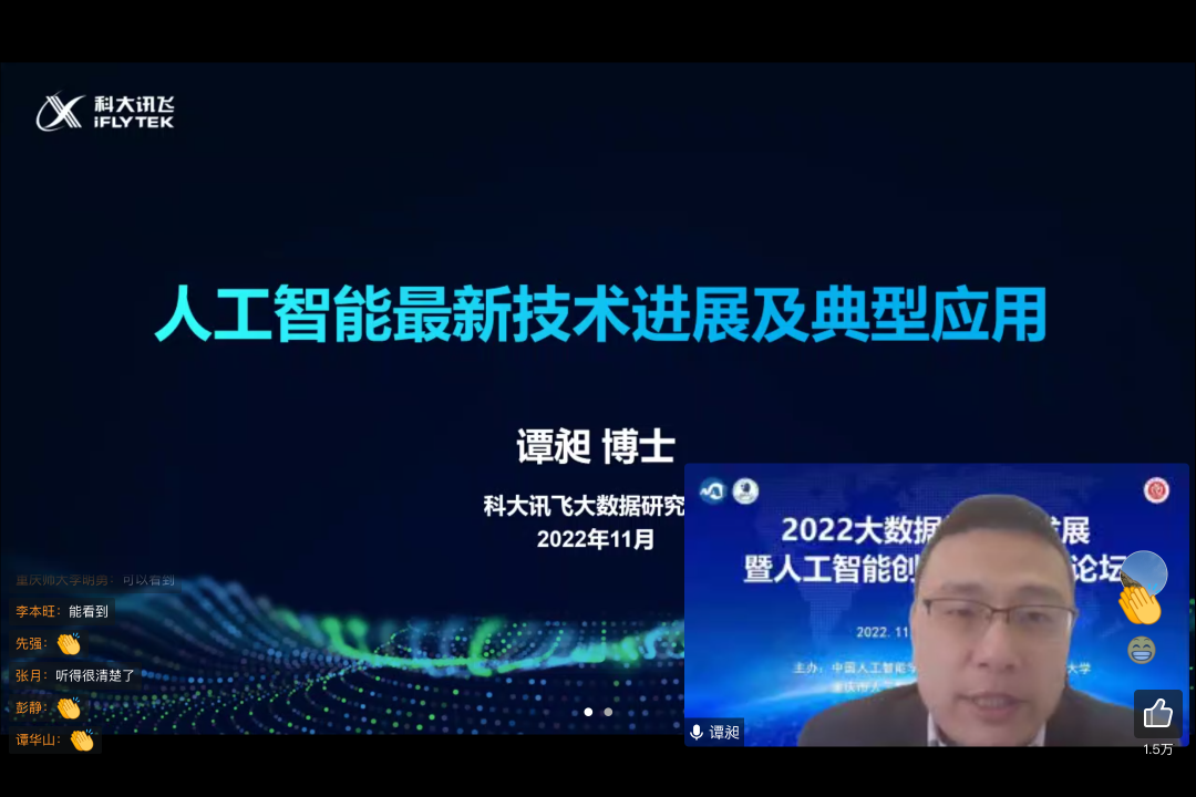 科大讯飞大数据研究院院长谭昶阐述了人工智能领域最新技术进展和典型应用。科大讯飞通过核心技术创新,助力2022北京冬奥会和冬残奥会,创造第一个沟通无障碍奥运会。他还表示科大讯飞正在用先进的人工智能技术赋能教育、医疗、司法等各个行业,建设美好世界。论坛在西南大学刘光远教授的主持中正式闭幕。