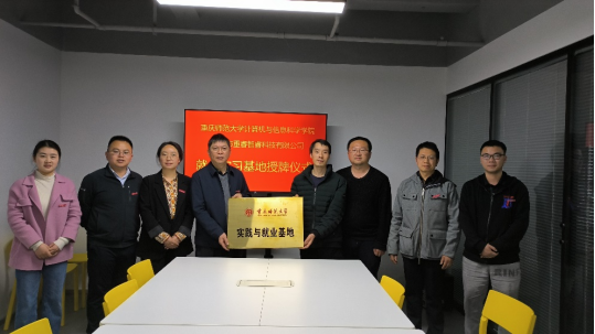在正式的交流会上,企业负责人黄键和陈建昌介绍了重睿智睿科技有限公司的基本情况,从用人单位的角度分享了当前就业市场对高校毕业生的要求和期待。随后,魏延院长从学校历史沿革、学院发展概况、优势特色专业、人才培养模式等多个方面详细介绍了重师和计信的情况,双方都进一步增进了对彼此的了解。通过交流,双方对共建校企合作项目,优化人才培养模式,拓展实习实训平台,增强学生动手实践能力等方面达成了一致意见,进行了就业实习基地的授牌。未来,双方将以本次交流会为契机,深化合作,整合资源,着力促成项目落实落地,切实提升人才培养质量。