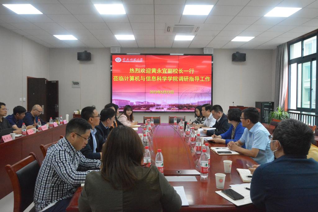 调研指导工作表示热烈欢迎。随后,院长魏延就学院历史沿革、专业和学科发展、人才队伍建设、学生工作、经费使用、采购及资产管理等工作进行汇报,重点围绕深入开展主题教育调研题目——贯彻落实新发展理念和立德树人根本任务,以工程教育改革助推高质量软信人才培养、工程教育认证工作、主题教育专项整治等进行了详细介绍。期间,黄校长就工程教育认证、校企合作等工作进行了关切询问和交流互动。