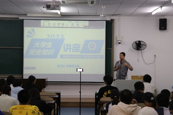 邀请了保卫处李鑫副处长在特教楼T2409室开展了2023级新生入学教育之校规校纪和安全教育讲座。