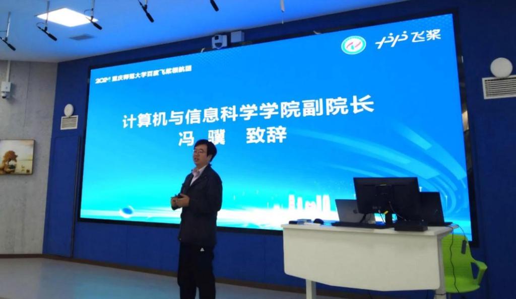 冯骥副院长在致辞中回顾了学院与飞桨平台的合作历程,强调了飞桨平台已在学院课程建设中广泛应用,并取得显著教学成果。他表示,此次讲座旨在提升学生对计算机行业前沿技术的认知,并通过与百度的合作,推动学院教学创新。