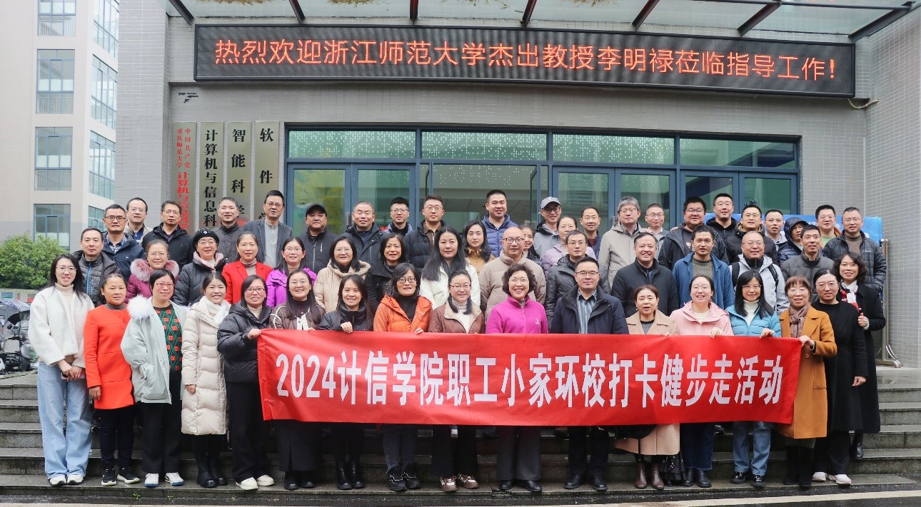 教职工们齐聚在致用楼下,精神抖擞、意气风发。随着一声响亮的出发令,大家甩开臂膀,迈开大步,沿着“致用楼->博雅楼->三春湖观景台->图书馆->博望亭->致用楼”这一条精心规划的路线开始了本次环校打卡健步走活动。路途中,教职工们一边欣赏校园美景,呼吸微雨后新鲜湿润的空气,一边畅快交流教学心得、生活趣事,欢笑声此起彼伏。每经过一个打卡点,教职工们纷纷拿起手机进行打卡拍照,积极参与到健步走活动照片投稿环节。一张张精美的照片记录着健步走时的欢乐时光,充分展现了计信学院教职工们对重师校园的热爱以及积极向上的精神面貌。