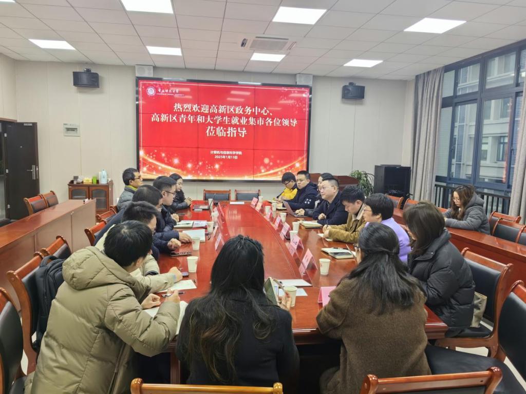 座谈调研。计信学院党委书记王军、党委副书记李若岩,以及各系部相关老师参加会议。