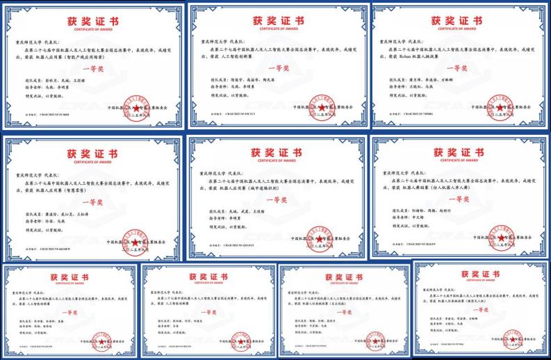 导师团队牵头,协同全校相关教师共同指导下,55支参赛队伍斩获国家级奖项51项,其中一等奖10项、二等奖11项,获奖总数与等级均居重庆市高校首位!