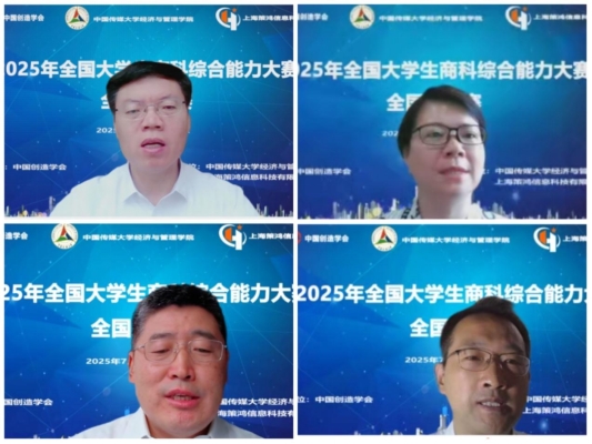 7月12日上午8点,“2025年全国大学生商科综合能力大赛全国总决赛”开幕式正式开始。开幕式由中国传媒大学经济与管理学院创新创业党支部书记刘长迎教授主持,中国创造学会张亚雷秘书长以及中国传媒大学经济与管理学院李珍晖副院长分别代表主办单位和承办单位发表致辞,裁判代表上海策鸿信息科技有限公司袁军总经理和中国传媒大学参赛选手分别代表全体裁判员和参赛队员进行了宣誓。