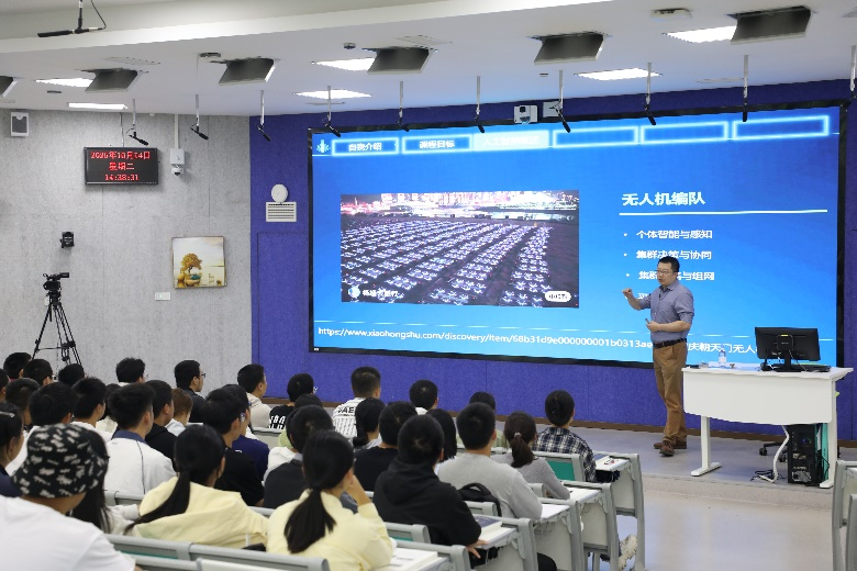 “我们重庆的无人机表演智能又精彩,但为何无人机编队背后的人工智能技术不是本课程的核心载体?”10月15日下午,贾韬副校长以“学术讲座+融合课堂”的形式,为数学科学学院、物理与电子工程学院的120名新生讲授了首堂AI通识课。课程从机器人、图像识别到智能推荐等实际应用场景切入,贾韬副校长通过生动案例介绍了人工智能的广阔前景,系统阐述了课程聚焦大模型思维塑造、培养人工智能素养的特色,在第一课中引入人工智能伦理的讨论,引导学生理性看待技术能力与局限,建立正确的AI价值观,激发了学生对人工智能学科知识极大的学习兴趣。
