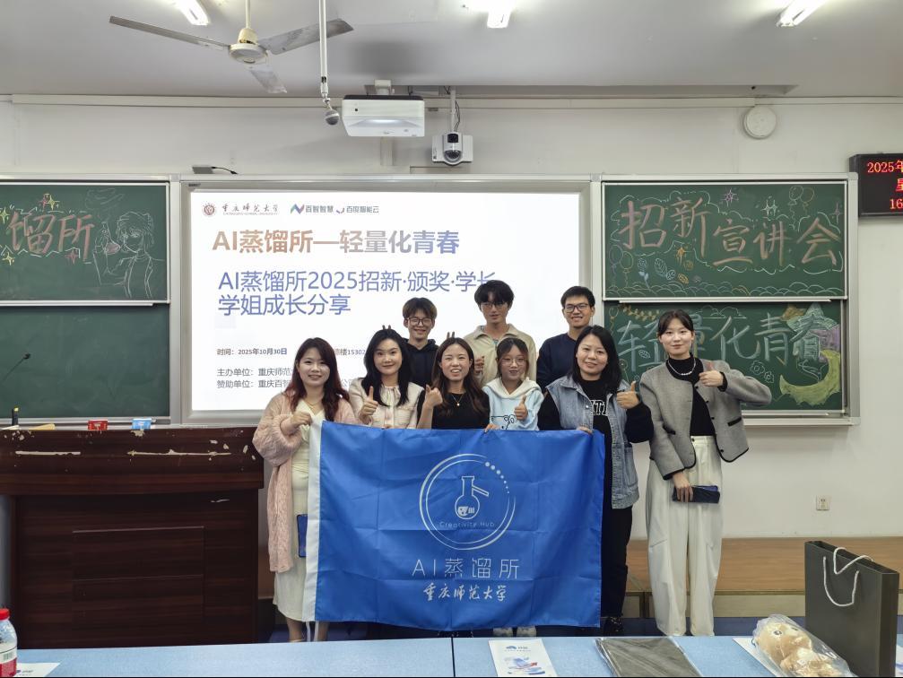 承办、重庆百智智慧科技有限公司支持的“轻量化成长·共创未来”人工智能应用创意大赛颁奖分享会在弘德楼15302顺利举行。活动采用“线下主会场+线上专家连线”形式,邀请重庆百智智慧科技有限公司唐杨、霍丽嘉宾莅临现场,百度专家段喜萍、秒哒平台专家邵一林通过线上连线参与,主持人刘维炜以及全校多名大一新生齐聚现场,共赴这场实践与成长的盛会。