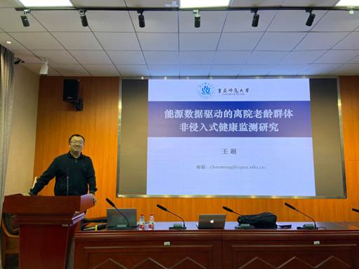 王超博士作题为“能源数据驱动的离院老龄群体非侵入式健康检测研究”。他针对离院场景中老龄群体的全天候实时数据获取及非侵入式健康风险评估等问题进行探讨,以人工智能和电力负荷分解为基础,解决偏远地区老龄群体健康数据追踪困难等问题,帮助提供有效的健康管理和干预措施。报告结束后,同学们就自己对王博士报告主题领域的疑问向王博士进行虚心请教。