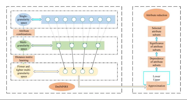 粗糙集理论的属性约简方法一直是人工智能(AI)领域的研究热点,而邻域粗糙集(NRS)模型由于其在不确定性推理中的良好泛化性能和实用性,近年来在生物信息学、金融数据分析、医疗诊断等领域得到了广泛应用。然而,传统NRS模型在计算样本间距离时使用固定的计算范式,未考虑属性空间中标签对距离计算的影响,这限制了约简算法性能的提升。针对这一问题,本文将距离度量学习引入NRS模型,提出了一种新的DmlMNRS模型。该模型充分考虑了多维属性空间中标签信息,通过使同标签样本间距离更近、不同标签样本间距离更远的综合原则,来学习样本间距离,从而有助于减少分类不确定性。该研究还介绍并证明了DmlMNRS模型的相关性质,并基于此定义了DmlMNRS属性约简准则和属性重要性,设计了一种基于DmlMNRS的启发式属性约简(DMNHAR)算法。本研究提出的新方法在15个公开数据集上进行了广泛实验,结果显示所提出的算法具有优越的鲁棒性和分类性能。