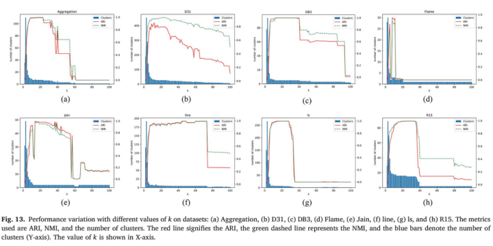 图 1 所设计的算法在不同数据集上不同参数的聚类性能对比图