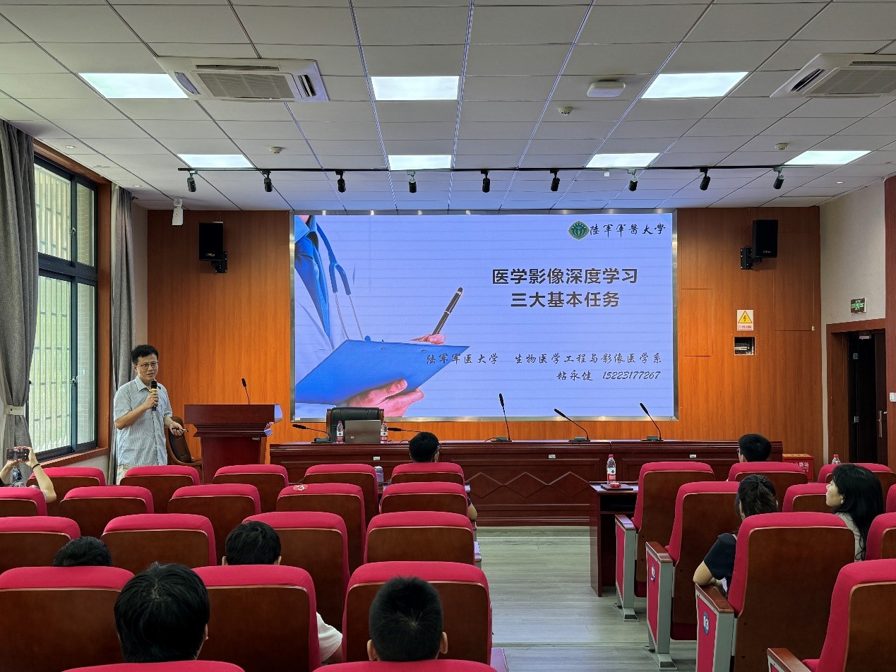 在致用楼102学术会议厅举办第二期“图灵学术大讲堂”,陆军军医大学教授粘永健应邀做题为《医学影像深度学习的三大基本任务》的学术报告。学院领导班子、全体教职工、研究生参加,会议由副院长崔少国主持。