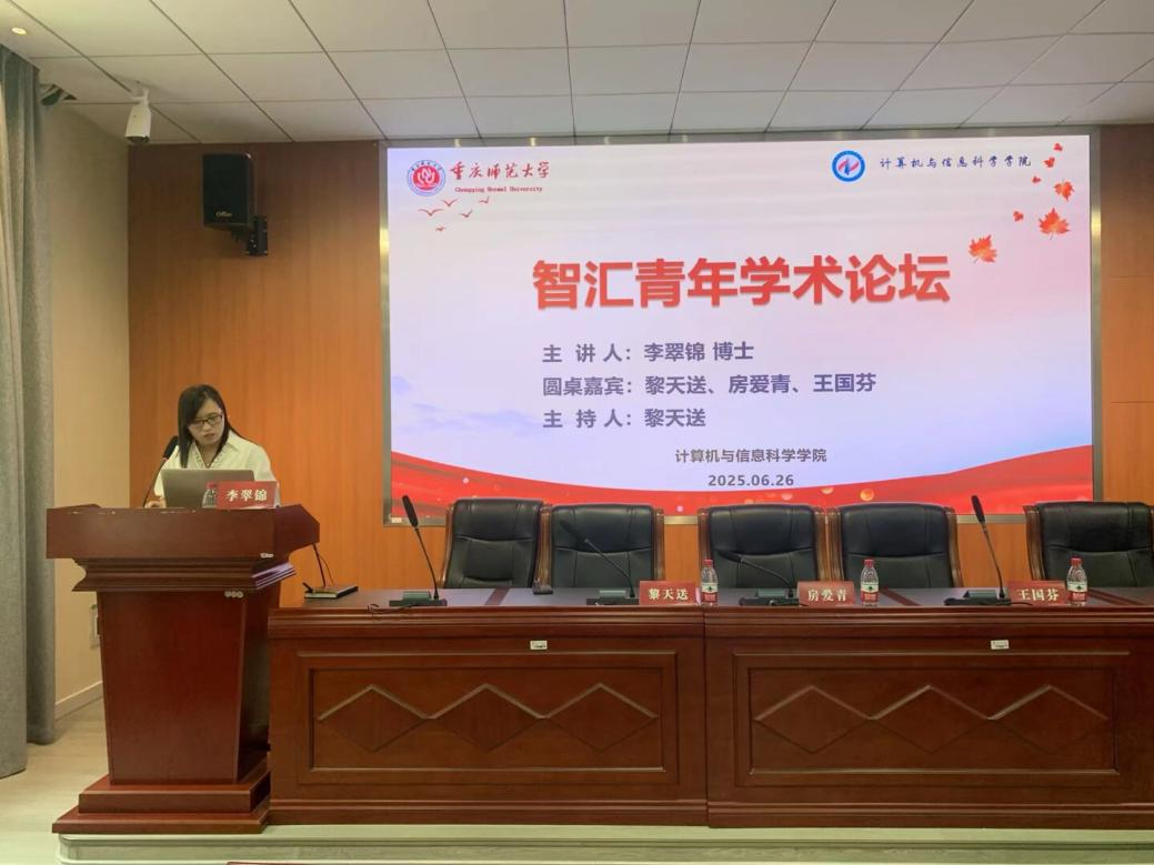 6月26日上午,第15期“智汇青年论坛”在致用楼102召开。本期论坛由黎天送老师主持,主讲人为李翠锦博士,圆桌论坛嘉宾包括黎天送、房爱青、王国芬,学院领导及相关师生共同参与。