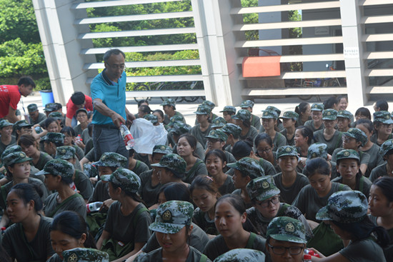 最后,在同学们热烈的掌声和欢呼声中,学院领导将矿泉水分发至每一位同学手中,鼓励同学们继续发扬吃苦耐劳的精神,确保军训实效。相信同学们在学院领导的关怀和鼓励下会以更加饱满的热情和昂扬的斗志顺利完成本次军训任务。