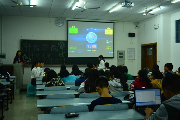 第二场辩论赛由计科(中美)与软外一班围绕“竞争与合作哪个更能使人进步”展开。正方计科(中美)的观点是“竞争更能使人进步”,作为反方的软外一班则认为“合作更能使人进步”。比赛刚开始双方辩论非常激烈,正方的论点一一被反方反驳,由此双方展开了一场拉锯战。