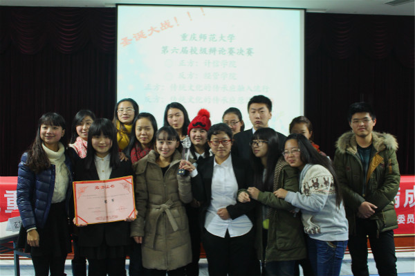校级辩论赛决赛在下午2:30于凯撒报告厅举行。本次大赛共历时两月五场,范围覆盖三个校区17个学院。决赛的评委由外国语学院党委副书记钟敏老师,历史与社会学院刘芳老师,重庆大学校辩论队队长、辉悦辩论社社长文品,四川外国语大学校辩队队长张松啸,以及重庆大学辉悦辩论社副社长王宜帆担任。比思论坛