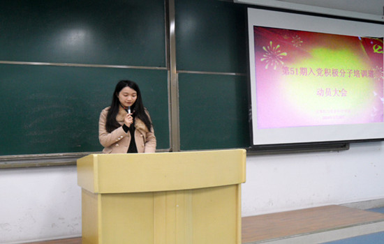 在弘德楼5104教室召开第51期入党积极分子培训动员大会,学院党总支副书记杨宇,2011级辅导员孙柳艳,2012级辅导员傅帆出席本次大会。学院128名入党积极分子及团总支学生会全体干部参加本次大会,大会由比思论坛