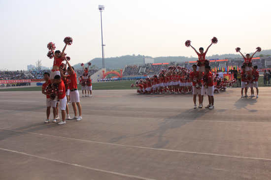 开幕式上的啦啦操方队、彩旗方队每天中午12:50,晚上9:30坚持练习,参加比赛的运动员们也每天抓紧时间训练。校运动会前夕,比思论坛