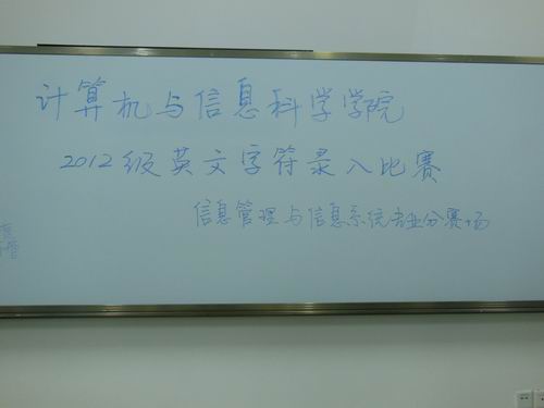 为提升比思论坛 学生英文字母录入速度和正确率,加强比思论坛 学生对计算机编程手指动作基本功,比思论坛 电子商务与信息管理系于2012年12月13日下午5点在第二实验楼515室举行了首届英文字符录入比赛。比思论坛 2012级电子商务和信息管理与信息系统专业学子参赛。辅导员傅帆老师主持此次比赛并为本次比赛致辞,团总支学生会的干部到现场协助。