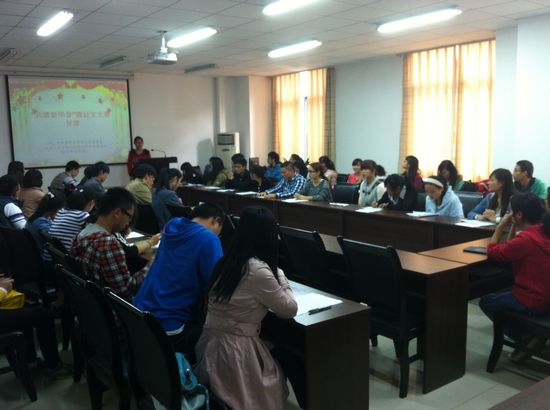 承办的“共谱新华章”微征文活动复赛于2012年10月28日下午3:00在极贤楼233拉开帷幕,担任本次复赛的评委有:学生书记徐苗、学生会主席张旭等组织部部长张露月主持。