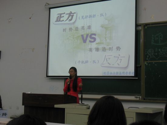据悉,到场的评委有第三届学生会主席郑洪辉、第三届校辩论队队长林慧妍、第四届辩论队队员丁舒,以及第四届团总支学生会办公室主任马丽莎、副主任颜韦。本次辩论赛的主持人和主席分别由学习部干事高兴和刘燕担任。上半场辩论赛是计科专业对阵信管专业,围绕辩题“时势造英雄”还是“英雄造时势”进行了激烈的角逐,场上队员字字珠玑、引经据典,赢得阵阵掌声。上半场辩论赛结束后,计科队更胜一筹,评委对两队的表现进行了点评及指导。