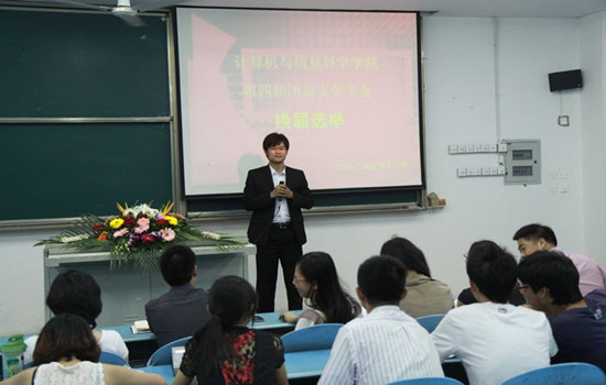 如期迎来第四届团总支学生会的初选活动。晚上7:00,所有竞选者携“亲友团”将弘德楼5304的座位填得满满当当,学院团总支副书记张敬出席活动,第三届团总支学生会主要负责人担任初选评委。活动由现任学生会主席郑洪辉主持。