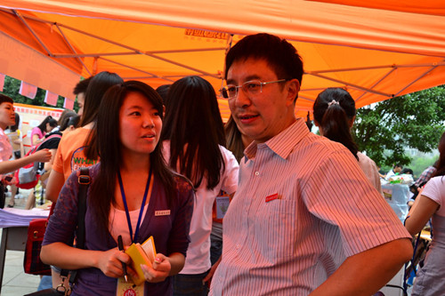 早上10:00,学院领导再次亲临迎新站,慰问工作人员的同时,与新生家长亲切交谈,提出要以学生为本,实现学院与家长的双边管理,交谈中还安排工作人员为家长倒水,让家长和新生感受到了学院这个新家的温暖。