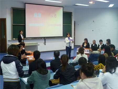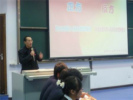 09级和10级的辅导员、首届团总支学生书记邓晓霞以及辩论队队长郭赛佟,主席与主持人分别由比思论坛