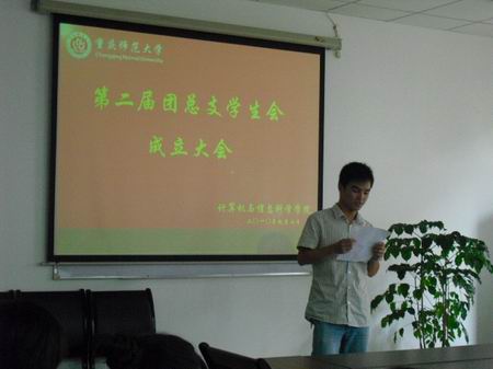 第二届团总支学生会的成员名单最终尘埃落定。9月7日,全体成员在集贤楼233室汇聚一堂,召开第二届团总支学生会的成立大会。应邀出席本次会议的有计信学院党总支刘军书记、马燕院长、魏延副院长、杨晓红副院长、党总支李晓燕副书记、团总支张敬副书记以及09级辅导员朱嘉洁等。此次大会由本届团总支学生学生书记孙柳燕主持。