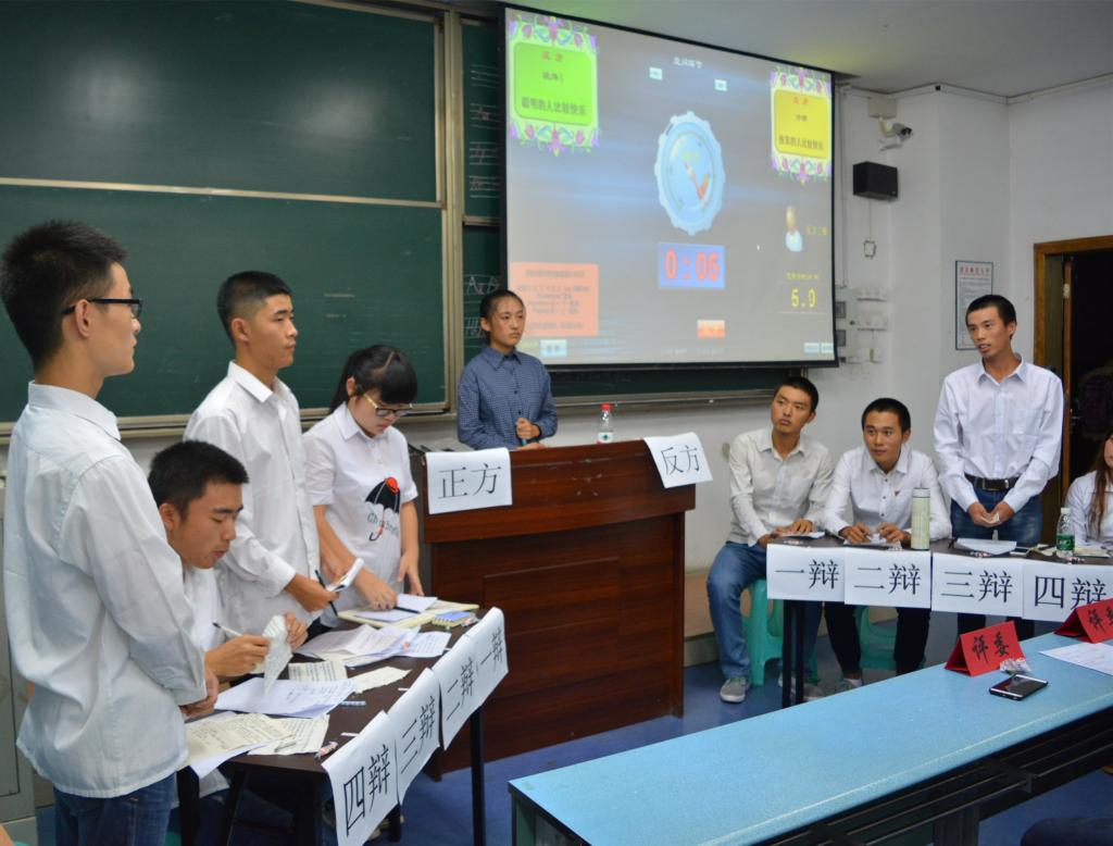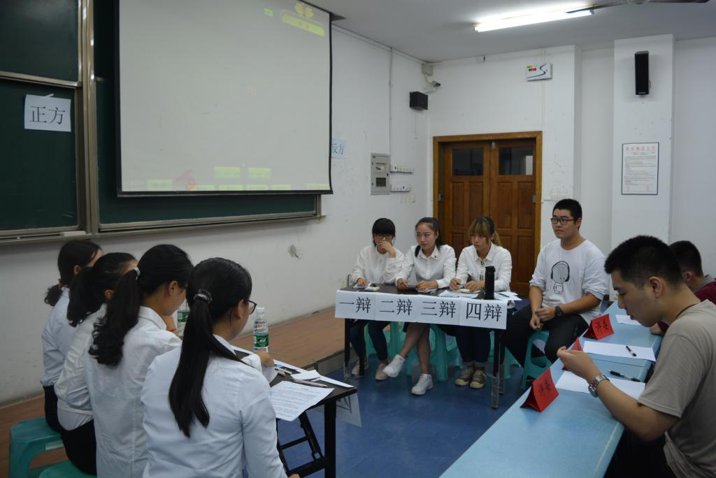 第八届团总支学生会学习部举办的迎新杯辩论赛初赛于9月23日下午7:30在弘德楼15301、15302两个教室分别举行。我校辩论队教练桂程琛老师、重庆科技学院辩论队教练陈潇洋老师、我校辩论队副队长南子烨、我校传媒学院辩论队队长曾坤、我校辩论队队员邹陈振、以及传媒学院辩论队队员叶腾文作为评委出席本次辩论赛。