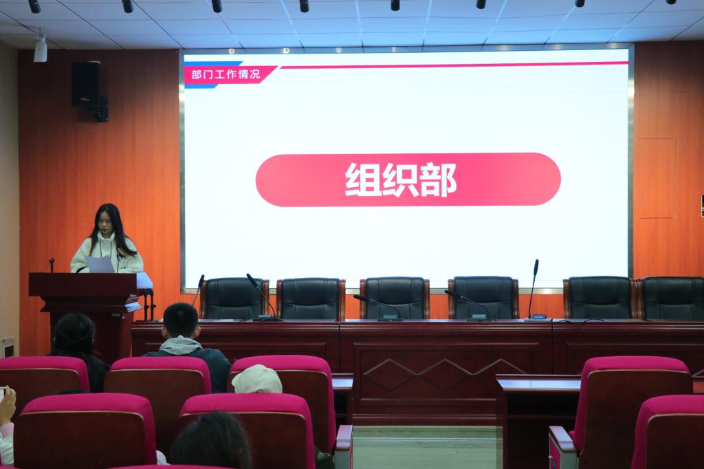 首先就“为什么同学参加活动少?如何提高同学活动积极性?”问题开展团学主题研讨,各部门积极讨论,上台发表看法与建议。紧接着主席团成员伍天池对学期学生工作月历进行讲解,针对本学期的部分活动日志安排做出强调。学生书记田镇齐进行年度总结报告,针对性讨论了重点问题,并提出完善方案。随后,志工部、组织部和创新部代表就上学期工作进行总结,并提出对新学期工作的设想和工作改进的方案。
