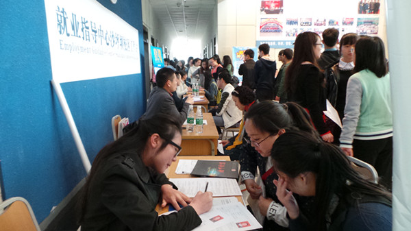 据悉,计信学院在2015下半学年已经举办了航信、亚信、惠普、成都民航二所和搜房网等公司的五场专场招聘会,部分优秀学生已如愿签约成功。此次招聘会为解决学院部分准毕业生还未选定意向单位、考研之后选择就业的问题,学院邀请中国民航信息网络股份有限公司、百度糯米重庆服务商、重庆小蚕豆科技有限公司以及被重庆媒体称为“业界最有良心企业”的重庆鸿巨网络科技有限公司等近40家重庆知名企业参与,到场求职学生人数达270人,招聘大厅内气氛火爆,人头攒动,多家用人单位的展位前都排满了投递简历和前来咨询的校内外求职者。