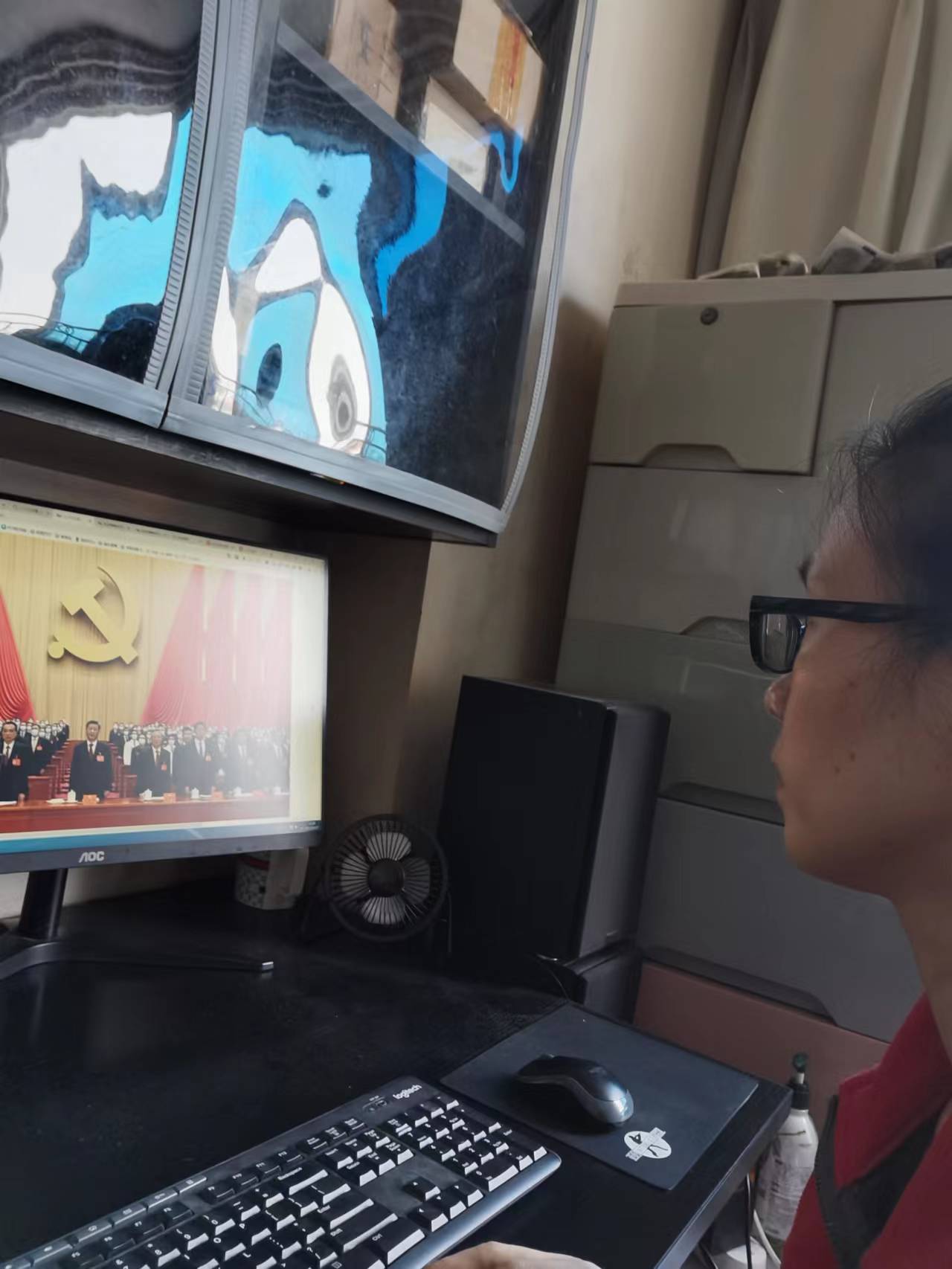 采取线上线下相结合的学习方式组织师生收看党的二十大实况。师生们或在宿舍、家中,教工党支部通过开设网络会议室集中收看,关注热议总书记报告。同时,16日上午,学院党委还组织全体留校教职工和部分学生代表于致用楼314党建活动室观看党的二十大开幕会实况。上午10点不到,师生们早早来到屏幕前收看开幕会盛况。在总书记的报告过程中,观看现场不时自发响起热烈的掌声。