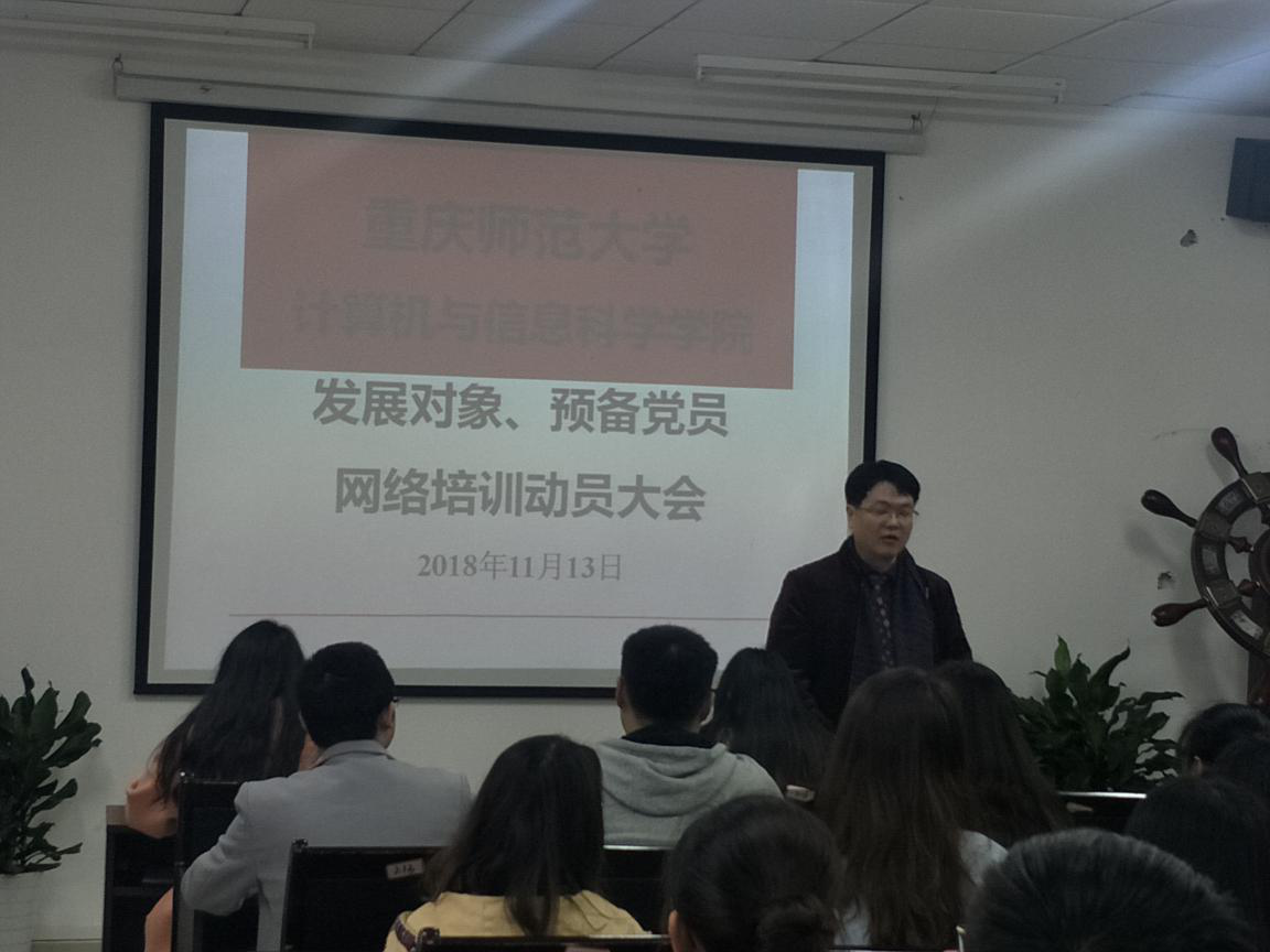 特于学院楼213教室开展发展对象、预备党员网络培训动员大会。本次活动由孙柳艳主持,学院党委副书记何东老师、学生二支部书记刘宇、学生三支部书记钟华出席,全院参加此次网络学习的发展对象、预备党员共计72名同学参与学习。