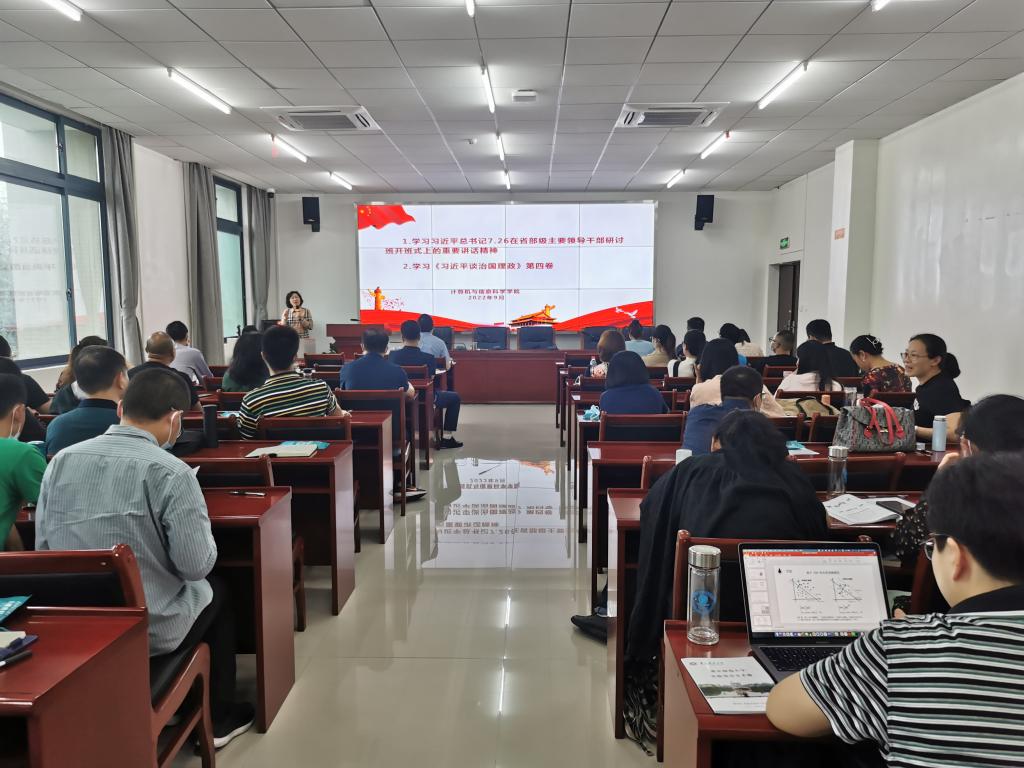 教职工在致用楼319会议室集中,对习近平总书记“7.26”讲话精神和《习近平谈治国理政》第四卷进行深入学习,此次学习会议由党委书记陈兰主持。